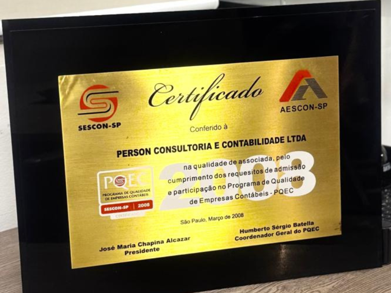 Conquistado o selo PQEC — Programa de Qualidade das Empresas Contábeis, concedido pelo Sescon-SP — marcando o início da jornada de certificações em gestão, qualidade e desempenho.